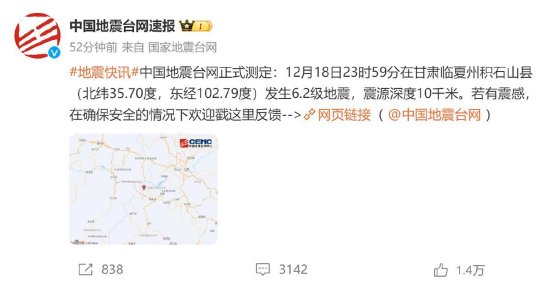 來源:頂端新聞 據甘肅地震局官方消息,中國地震台網正式測定:12月18日23時59分,在甘肅臨夏州積…