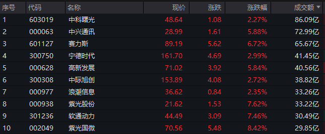 滬深兩市半日成交額6682億,較上個交易日同期縮量2206億。個股方面,中科曙光成交額達86.09億元居首,中興通訊成交額超70億元,賽力斯成交額超60億元,寧德時代、高新發展成交額均超40億元。