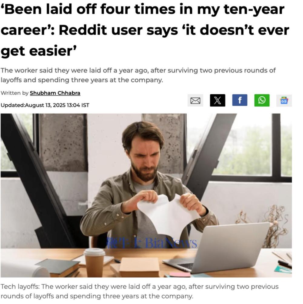這篇帖子迅速獲得了數百條評論。人們分享著相似的故事:有人在孩子換學校後被裁;有人剛買完房就收到通知。有人為了配合公司強製返回辦公室的政策,舉家搬遷,幾個月後卻被一條短信辭退。