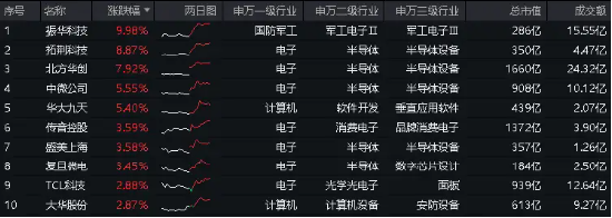 第三個“國九條”發佈,今日(4.15)市場一片紅紅火火的漲勢,伴隨2024年一季度業績預告陸續出爐,半導體行業亮眼業績提振市場信心。電子50指數成份股中,振華科技一度觸板,拓荊科技大漲近9%,北方華創漲超7%,中微公司、華大九天、傳音控股亦大幅跟漲。
