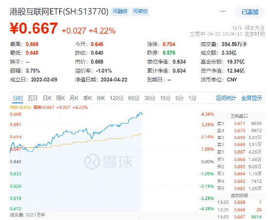 重倉港股互聯網龍頭的港股互聯網ETF(513770)午後進一步攀升,場內價格續漲4.22%,豪取10日、20日、半年線三根均線,實時成交額2.33億元。