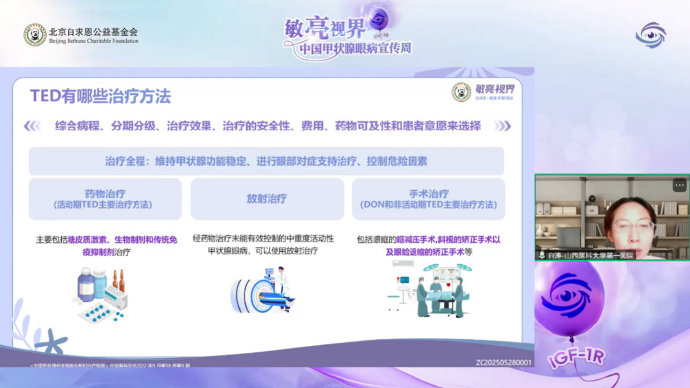 作為近年來的重大突破,替妥尤單抗是目前唯一獲FDA及國家藥監局批準用於TED治療的靶向藥物,能夠有效改善眼突與複視。白主任通過實際病例展示了患者使用該藥後,視力、外觀和生活質量均得到顯著改善,引起觀眾強烈共鳴。