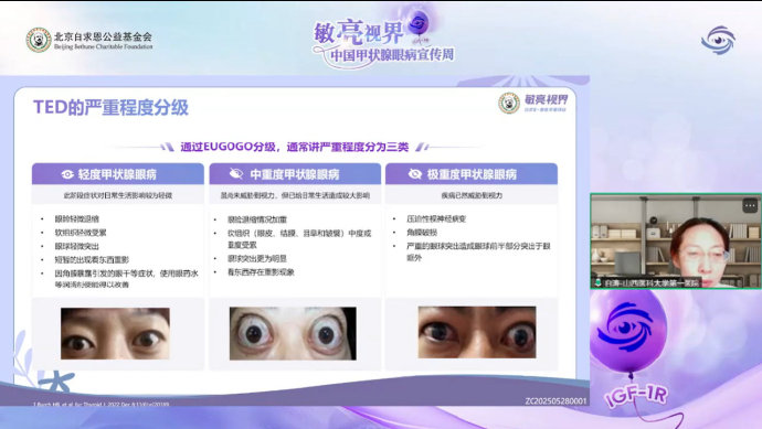白濤主任首先對甲狀腺眼病(Thyroid Eye Disease, TED)的定義與特點進行了全面介紹。他指出,TED是一種與甲狀腺功能異常密切相關的自身免疫性眼病,典型表現為眼球突出,但遠不止“眼睛變大”那麼簡單。其臨床症狀包括: