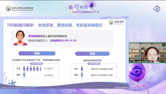 在“敏亮視界·患者關愛項目”的支持下,2025年甲狀腺眼病系列科普直播持續進行。8月15日晚,本場直播特別邀請山西醫科大學第一醫院白濤主任,為廣大患者及家屬帶來了一場主題為《甲狀腺眼病的科學診療與新進展》的線上分享。活動吸引了眾多觀眾線上收看,互動熱烈,答疑環節氣氛高漲。