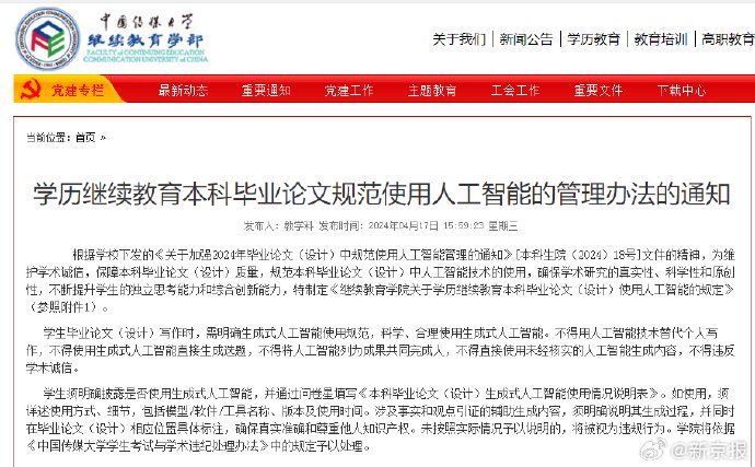 【#多所高校明確學生寫論文使用AI#】#畢業論文用AI寫可靠嗎#[思考]畢業季來臨,2024屆高校畢業生陸續進入論文答辯階段。今年不少高校發佈通知,明確將對畢業設計(論文)中的人工智能生成內容佔比進行檢測,並對AI代寫在論文中的比例等問題作出規範。