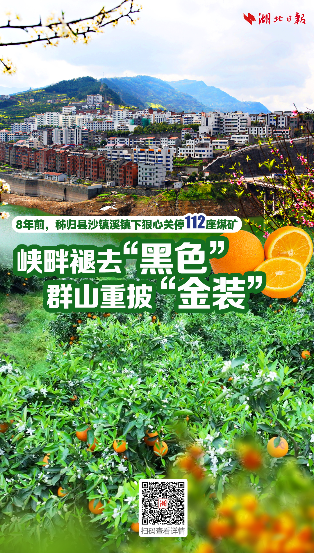秭歸縣沙鎮溪鎮地處長江西陵峽畔。初夏時節,滿山坡花果飄香。果農於花叢中摘下金燦燦的果子,一車車運往鎮上的收購點。
