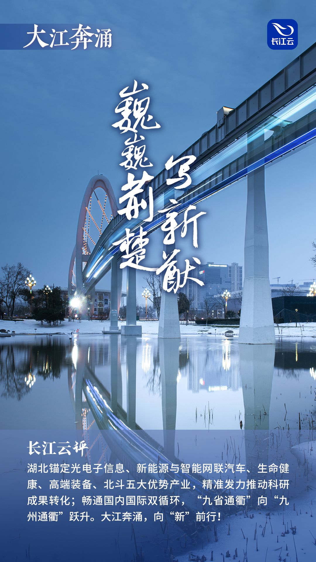 時代浪潮滾滾向前,科技利刃開闢未來。逐星辰大海,趕時代大潮,向世界揚帆。加快科創協同發展,長江經濟帶「新」「新」向榮。乘勢而上,以信息化賦能推進四化同步,奮力書寫中國式現代化湖北實踐的壯美篇章。