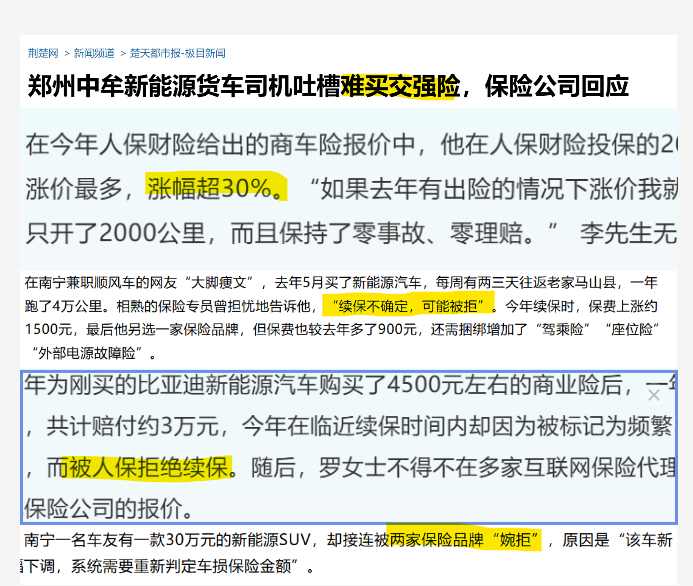 保費跳漲、續保被拒,新能源車主為何養不起「電動爹」?https://www.thepaper.cn/newsDetail_forward_26718391