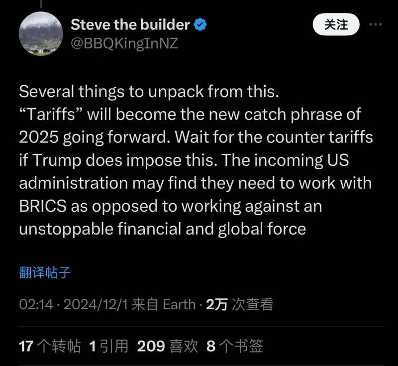 特朗普的這一威脅言論引發了全球關注和討論。不少外國網民表示,這種做法行不通,因為金磚國家可以對美國徵收同樣的關稅。
