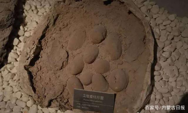 陳列在內蒙古自然博物館的戈壁菱柱形恐龍蛋。