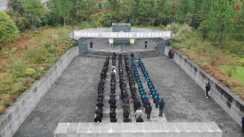 今天上午,杭州市「勿忘國恥 強國有我」國家公祭日紀念活動在抗日戰爭勝利浙江受降紀念館「千人坑」遺址廣場進行。社會各界代表,緬懷英烈,祈願和平。