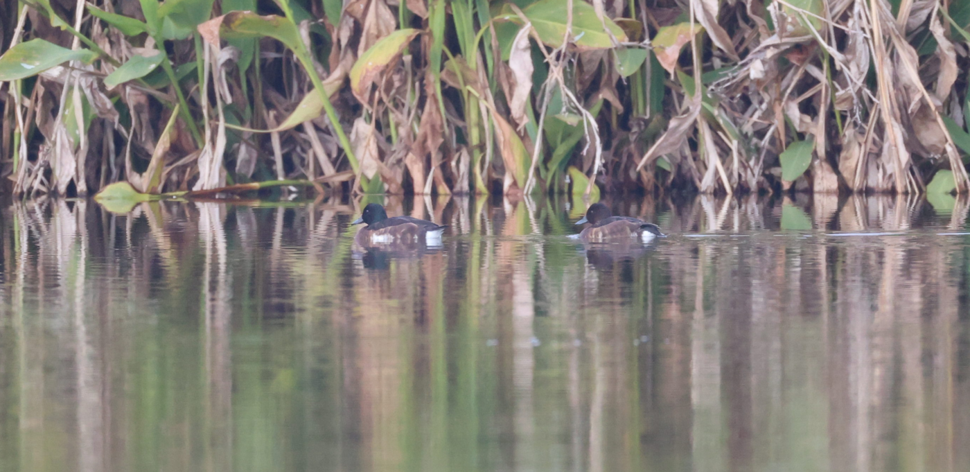 「我們在觀察一群鴨類種群時,發現其中2隻鴨子與頭、頸、胸為栗色的白眼潛鴨明顯不同,在陽光照耀下呈現出綠色光澤,結合其他特徵,我們判斷為青頭潛鴨。」石屏縣林業和草原局野生動植物保護科工作人員孔賓表示,經現場的中國科學院昆明動物研究所鳥類和濕地專家確認,此次發現的確認為極度瀕危物種——青頭潛鴨。
