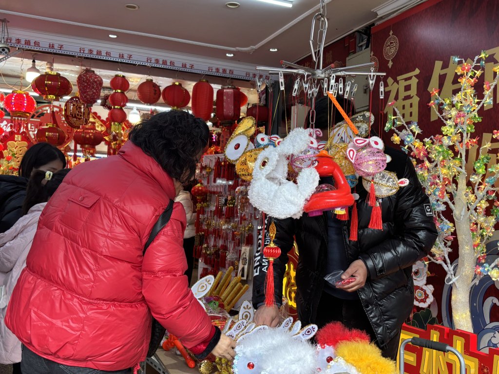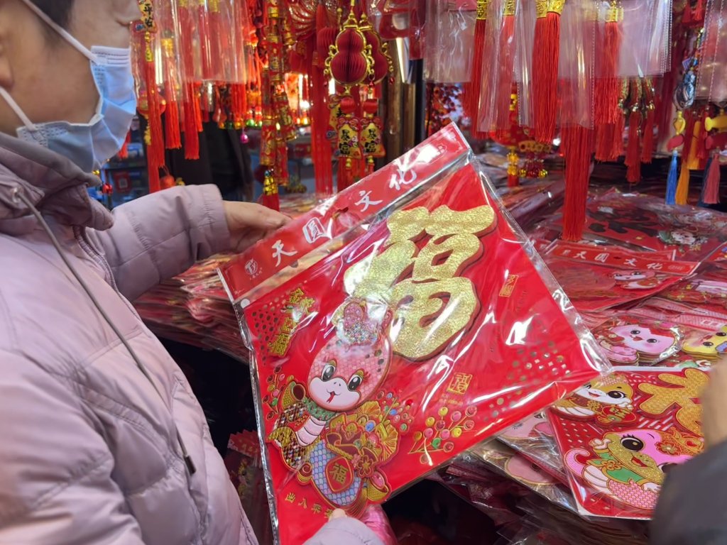 2025年1月23日,上海福佑商廈,周女士給女兒挑門貼。