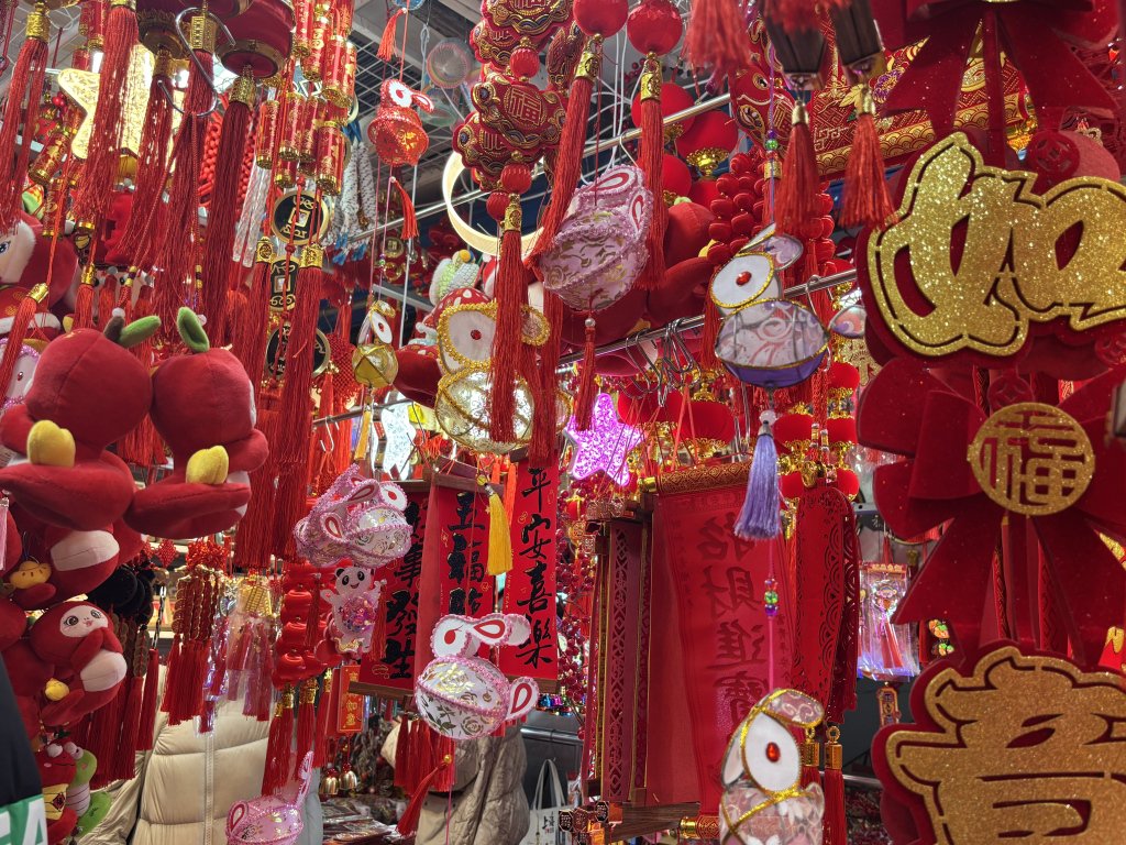 2025年1月23日,上海福佑商廈,家家店舖掛滿了新春飾品。