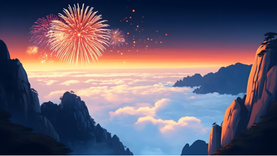 呂自瑞用AI軟件生成的黃山雲海煙花圖。新華社發