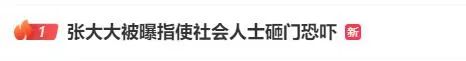 隨後,話題#張大大被曝指使社會人士砸門恐嚇#衝上微博熱搜第一。