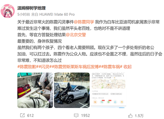 「老公多處骨折,往後日子不知道該怎麼過」,比亞迪司機家屬發聲,陳震再次道歉
