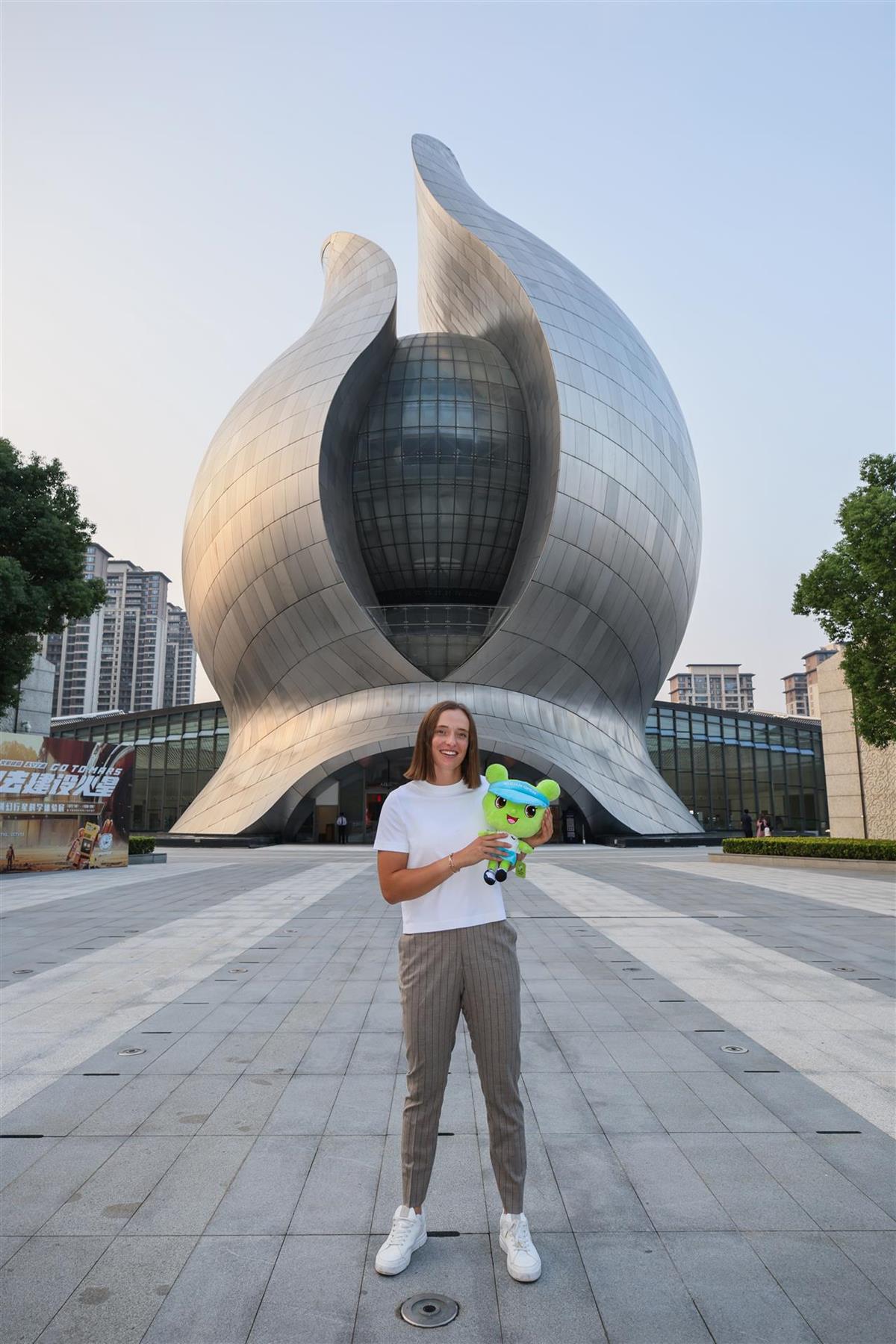 10月5日下午,首次來到武漢參加武網的斯瓦泰克前往中國建築科技館,打卡武漢這座造型獨特的科技館,開展了一場融合傳統與現代的文化探索。