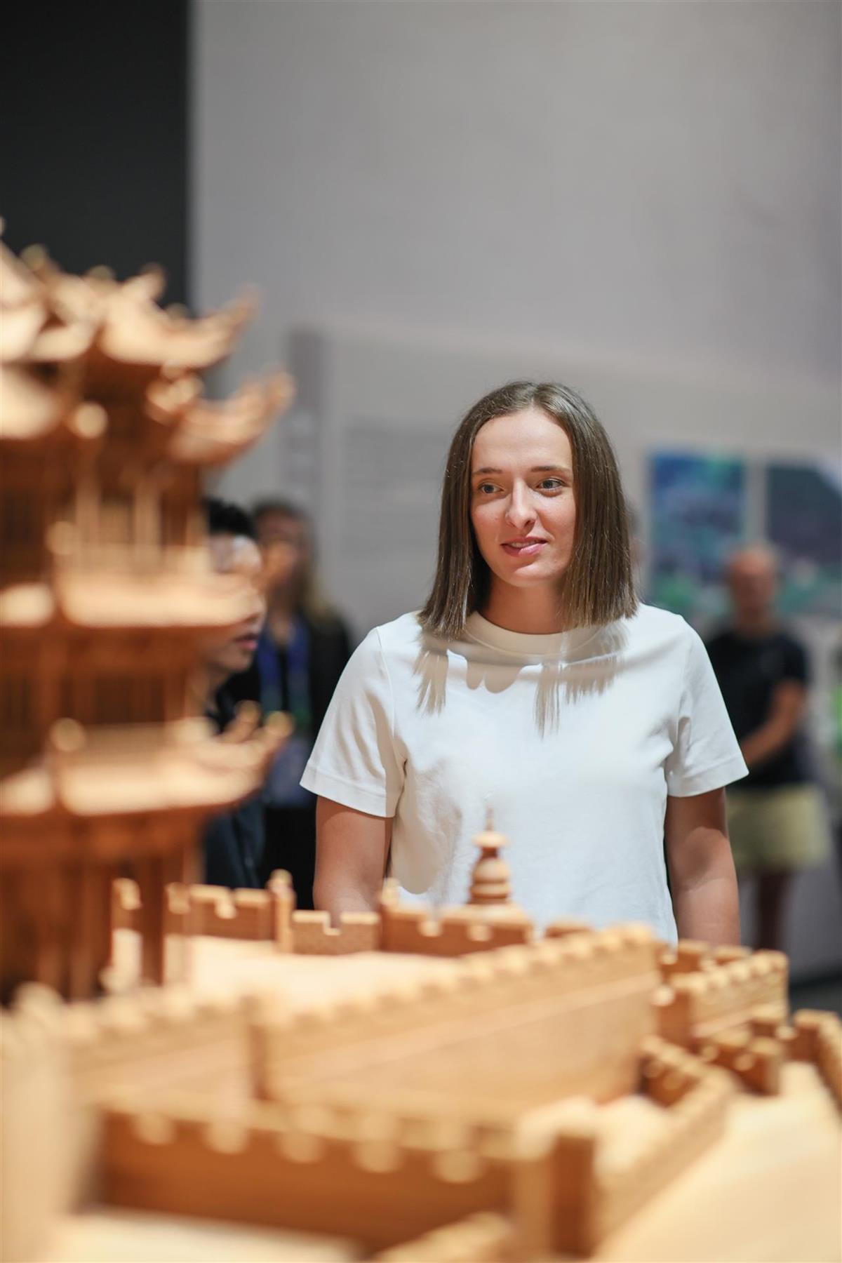首次參賽武網的斯瓦泰克打卡中國建築科技館,還親手搭了個「黃鶴樓」