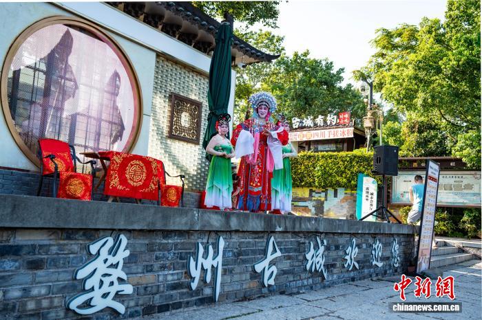 10月5日,婺州古城內的婺劇表演。國慶假期,位於浙江金華的婺州古城打造全域沉浸式互動空間,吸引大量遊客前來參觀遊覽。中新社記者 吳君毅 攝