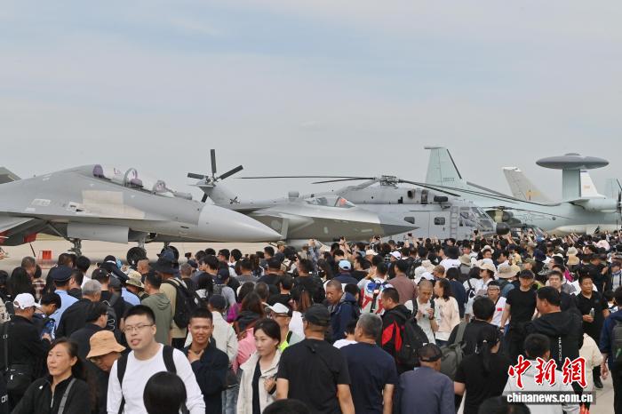 9月19日,2025空軍航空開放活動和長春航空展在長春國際航空博覽城舉行。圖為殲-20(左二)首次靜態展示,吸引眾多民眾前來參觀。(資料圖) 張瑤 攝