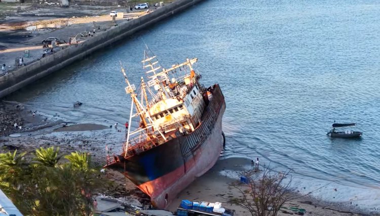 台風颳來湛江版「布魯威斯號」引熱議,當地:船主近期可能拖走