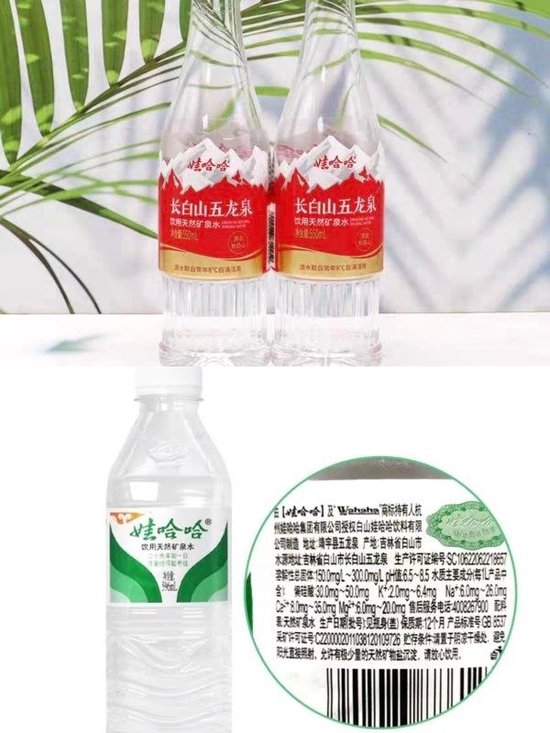 娃哈哈天然礦泉水分為綠瓶和紅瓶兩種,水源地均為長白山五龍泉。但該產品多為第三方經銷商在線上平台銷售,在淘寶和京東的娃哈哈官方旗艦店以及實體店中並未銷售。娃哈哈的淘寶、京東官方旗艦店均為宗馥莉旗下的宏勝集糰子公司實際經營。