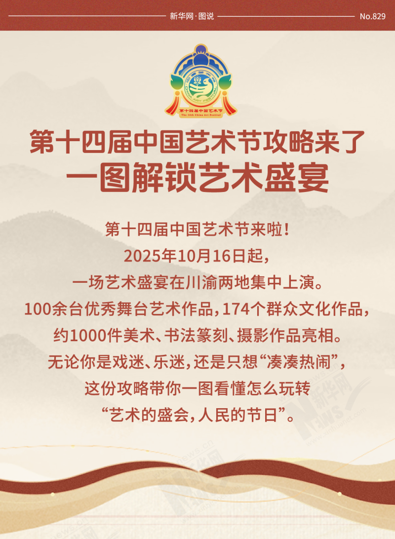 2025年10月16日起,一場藝術盛宴在川渝兩地集中上演。100餘台優秀舞台藝術作品,174個群眾文化作品,約1000件美術、書法篆刻、攝影作品亮相。無論你是戲迷、樂迷,還是只想「湊湊熱鬧」,這份攻略帶你一圖看懂怎麼玩轉「藝術的盛會,人民的節日」。