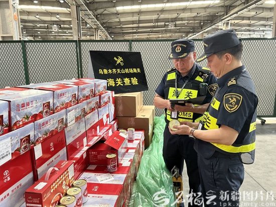 8月16日,烏魯木齊天山機場海關關員監管出境貨物。 趙蓓菁 攝