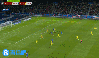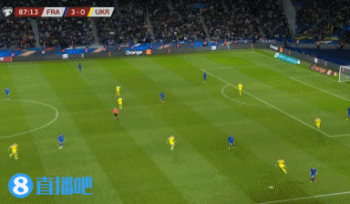 第88分鐘,伊基迪基策動進攻,與麥巴比打出配合後,禁區內搶點攻門得手,法國隊4-0烏克蘭。↓