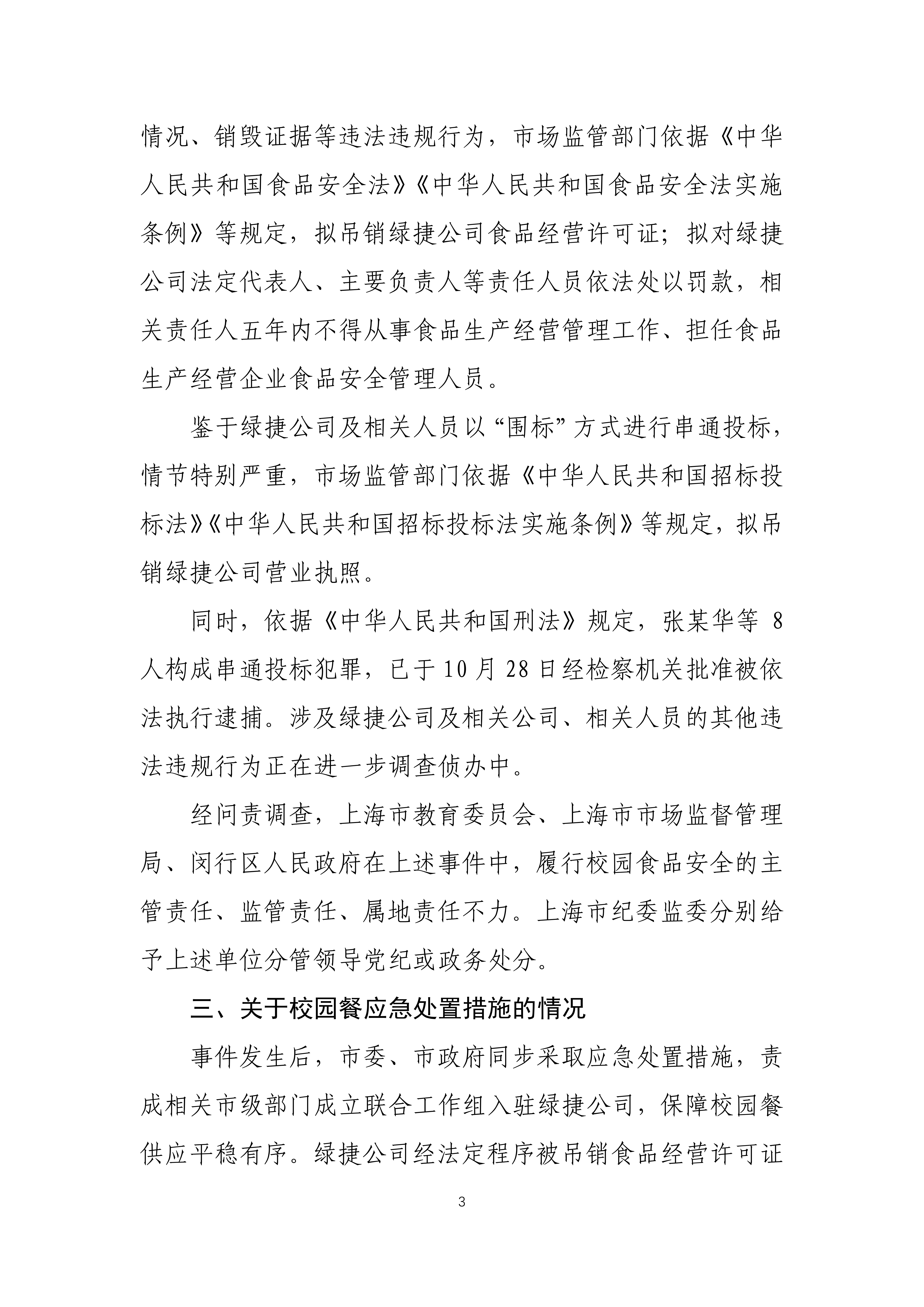 中國新聞 上海通報綠捷公司食安事件:8名責任人被依法執行逮捕 11月14日 14:16 新浪網 news-china-auto-hilite 新京報訊 11月14日,上海市「綠捷食安事件」調查組發佈情況通報,內容如下: 編輯 李憶林子
