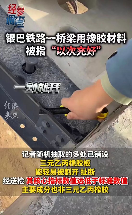 「一割就開,一扯就斷」!銀巴鐵路橋樑被曝用橡膠材料「以次充好」,蘭州鐵路監管局:調查組已赴現場核實
