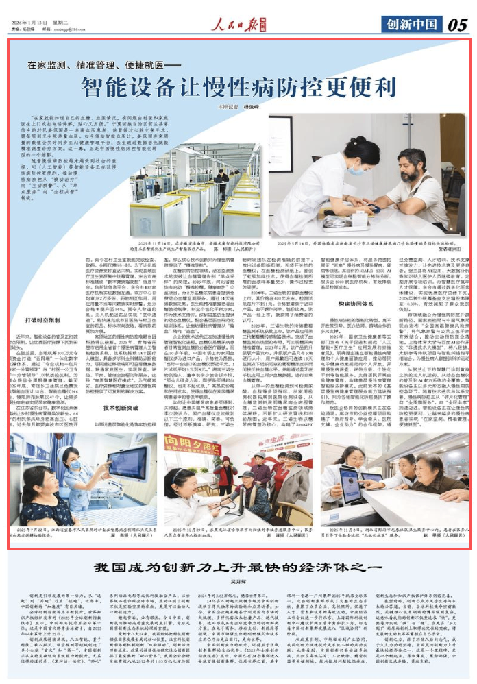 從賀蘭山下的智慧門診到黃海之濱的無人機送藥,從動態血糖儀的普及到AI審方系統的全覆蓋,智能設備正以多元形態融入慢性病防控各環節。隨著技術迭代與體系完善,慢性病防控正從「碎片化管理」向「全週期服務」,向「全民共享」加速邁進。智能設備正在讓慢性病防控更便利,讓越來越多的慢性病患者實現「在家監測、精準管理、便捷就醫」。(本報記者 楊俊峰)