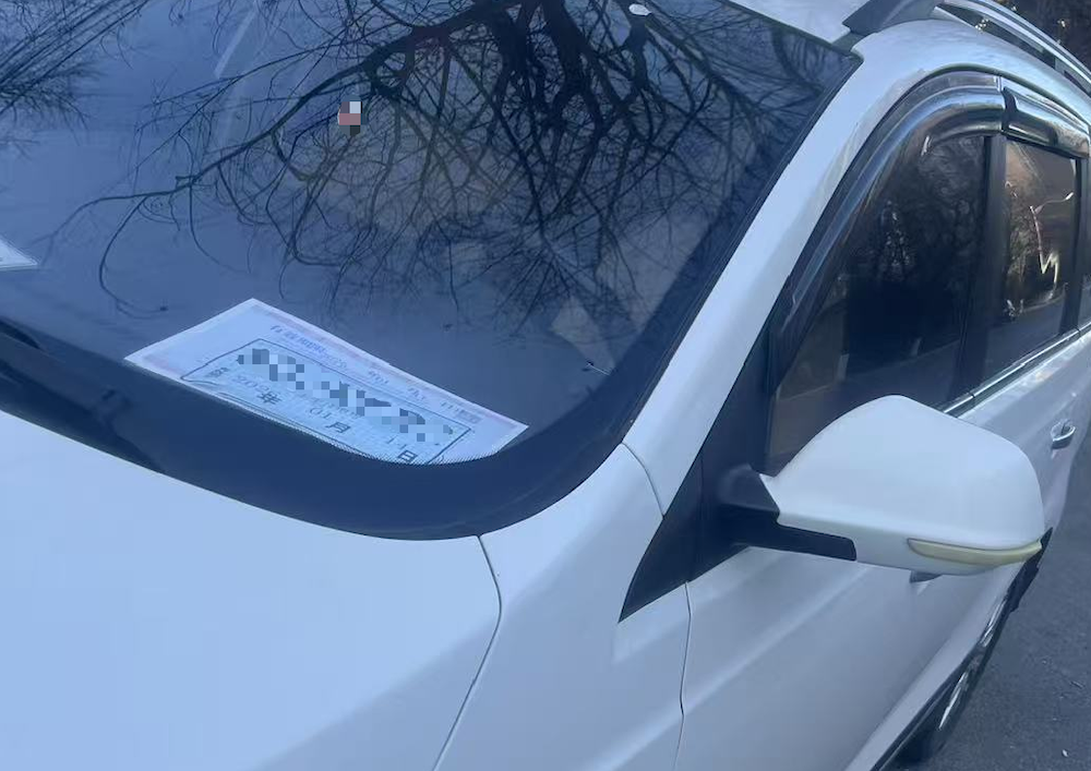 「無牌」非法運營車輛司機放置於駕駛位擋風玻璃前的臨時車牌。