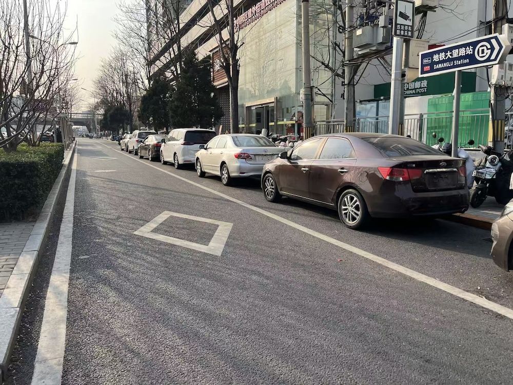 這些攬客司機的「無牌」車就停在一旁不遠處的監控死角——「西大望路」路牌之下。一輛車拉滿乘客出發後,下一輛「無牌」車就會補上來。