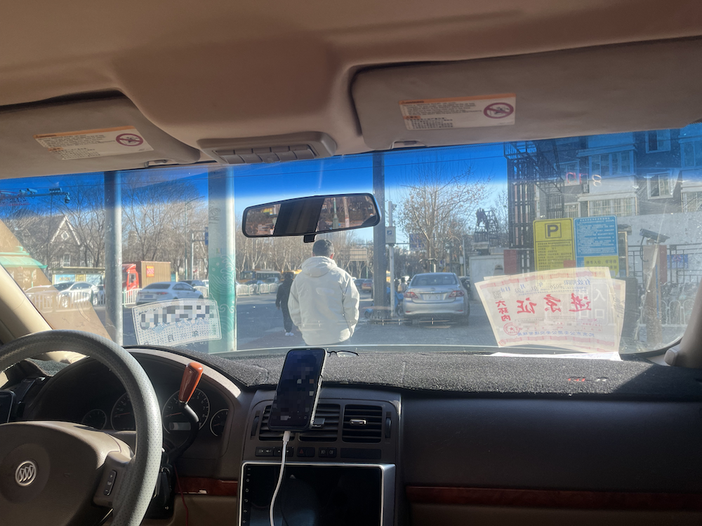 「無牌」非法運營車輛司機放置於擋風玻璃前的進京證。