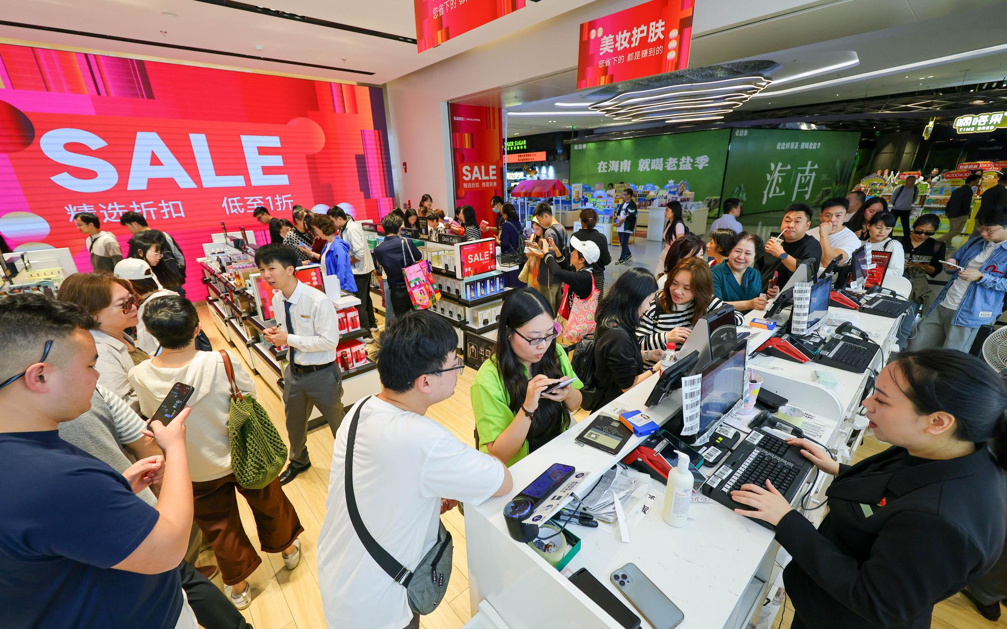 2025年12月19日,顧客在cdf海口國際免稅城排隊買單。圖/IC photo
