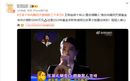王菲被曝十年間向嫣然醫院「匿名捐贈」3268萬,登上熱搜
