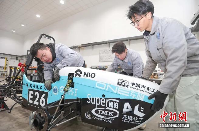 2025年10月,天津中德應用技術大學德擎速影車隊的大學生們對車隊首輛賽車「AFZ01」進行最後調試。天津中德應用技術大學供圖