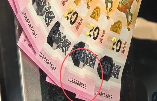 潮新聞記者諮詢了一位業內從事珍稀錢幣收藏和交易的商家,對方同樣評估8個8的「馬鈔」價值在300萬元左右。據他說,龍年發行的同樣的號碼的「龍鈔」,當年的成交價是280萬元,「一般是被有這類收藏愛好的人收走珍藏。」