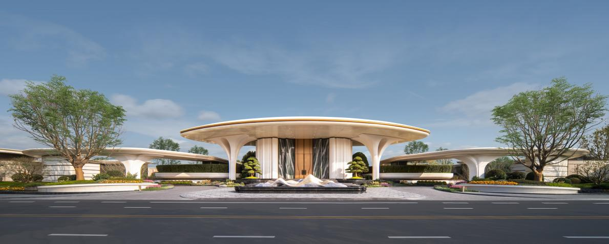 成都建發・海耀,以「天人相應、道法自然、生生不息」為設計理念,以現代設計語言詮釋川蜀文明的自然觀。主入口以「城市雕塑」為理念,打造連續約230米界面,約60米寬度主門與約12米懸挑,以恢宏氣勢致敬城市。