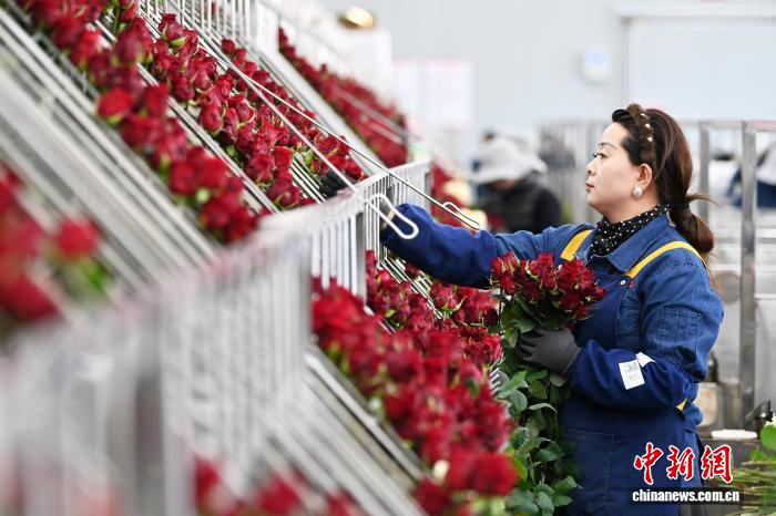 「我們提前一個月就啟動備貨,近期日產量已突破20萬枝,熱門品種需提前半個月預訂。」鮮花港負責人馬連4日向中新社記者介紹說,這座被譽為「玫瑰超級工廠」的鮮花基地,憑藉得天獨厚的自然條件與先進的科學技術,實現全年無休產花,年產鮮切花達7200萬枝。