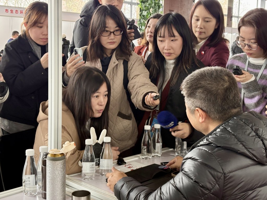 2026年上海兩會期間,現場諮詢活動中,上海市政協委員張玉霞與上海市民政部門工作人員交流。澎湃新聞記者 陳悅 圖