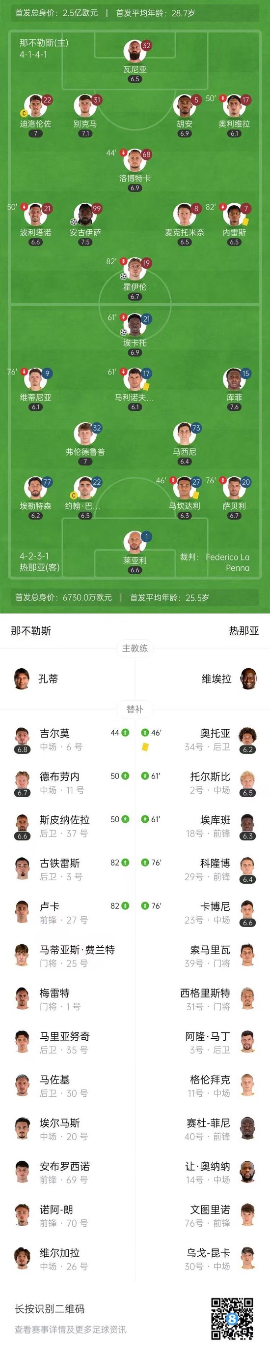 第75分鐘,安古艾沙跟進勁射被撲,霍伊倫小禁區前沿補射完成反超,拿玻里2-1熱那亞。↓