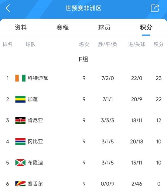 目前在世盃外積分榜上,加蓬積22分排名小組第2,落後小組第1的科特迪瓦1分,仍有直通2026世界盃的希望。最後一輪世盃外中,加蓬將主場對陣布隆迪,科特迪瓦將主場對陣堅尼亞。