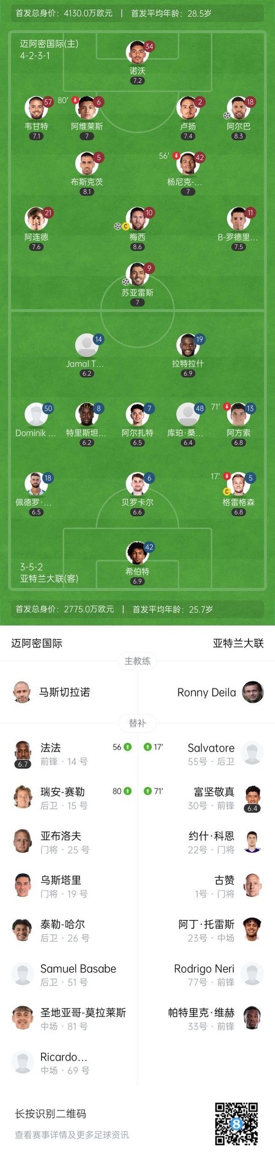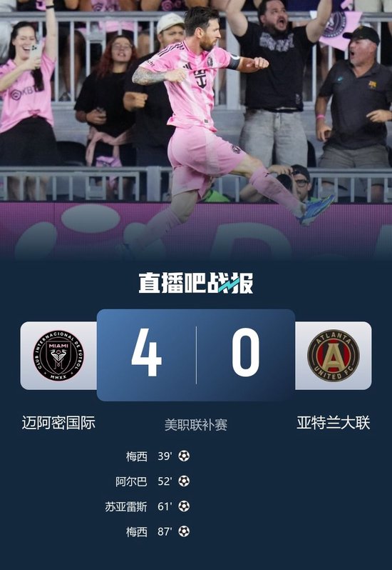 香港時間10月12日訊 香港時間10月12日07:30,美職聯常規賽邁阿密國際迎戰阿特蘭大聯的比賽在洛克赫特球場進行,上半場美斯失單刀,洛迪古斯助攻美斯兜射破門打破僵局,蘇亞雷斯淩空抽射中楣,半場結束,邁阿密國際1-0阿特蘭大聯。下半場美斯助攻艾巴挑射擴大比數,蘇亞雷斯淩空抽射破門,艾巴助攻美斯抽射破門,最終邁阿密國際4-0阿特蘭大聯距榜首4分。