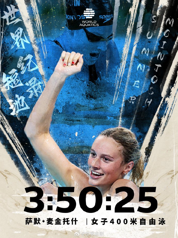 1。薩默-麥金托什(加拿大):3分50秒25,女子400米自由泳