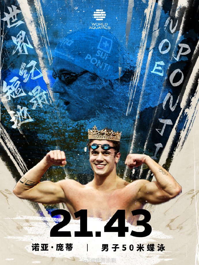3。諾亞-龐蒂(瑞士):21秒43,男子50米蝶泳