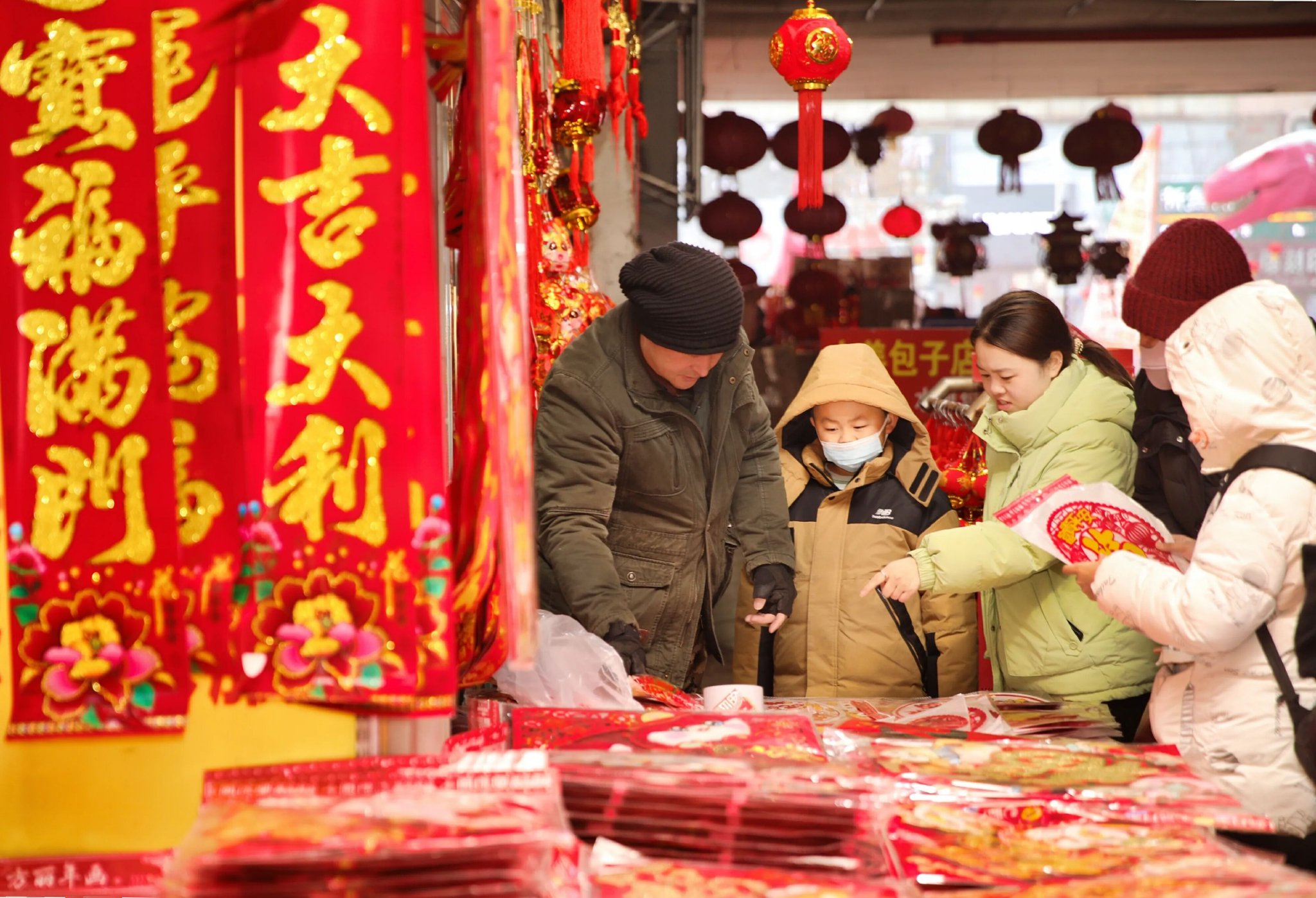 1月20日,市民在五家渠商貿城選購新年喜慶飾品。春節臨近,五家渠市年貨市場日漸紅火,年味漸濃,人們忙著置辦年貨,喜迎新春佳節。魏新江 攝