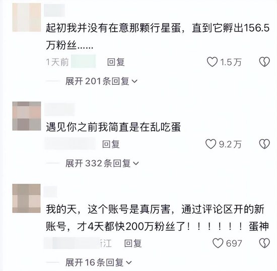 不少網民表示,「起初以為這隻是一句玩笑話」,不曾想是「蛋神」;還有網民表示,「遇見你之前簡直是在亂吃蛋」。